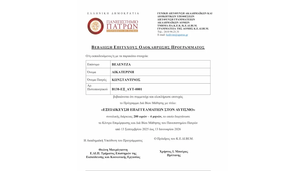 Η ιατρός είναι πιστοποιημένη στο σύστημα της ΗΔΙΚΑ και παρέχει ηλεκτρονική συνταγογράφηση φαρμακευτικής αγωγής και παρακλινικών εξετάσεων.
